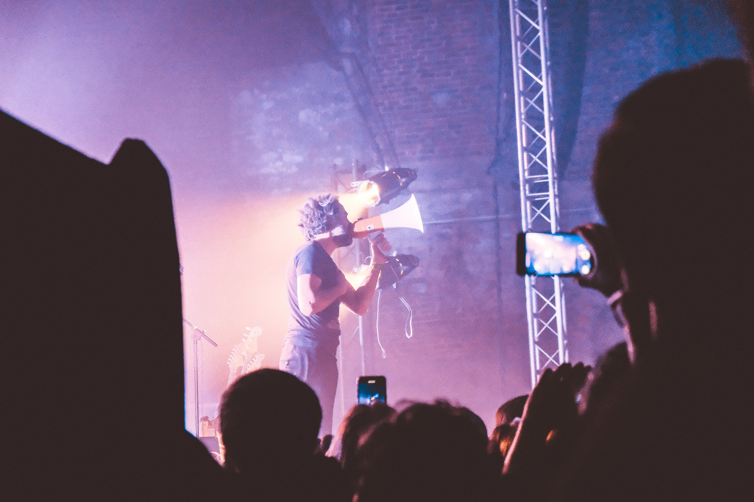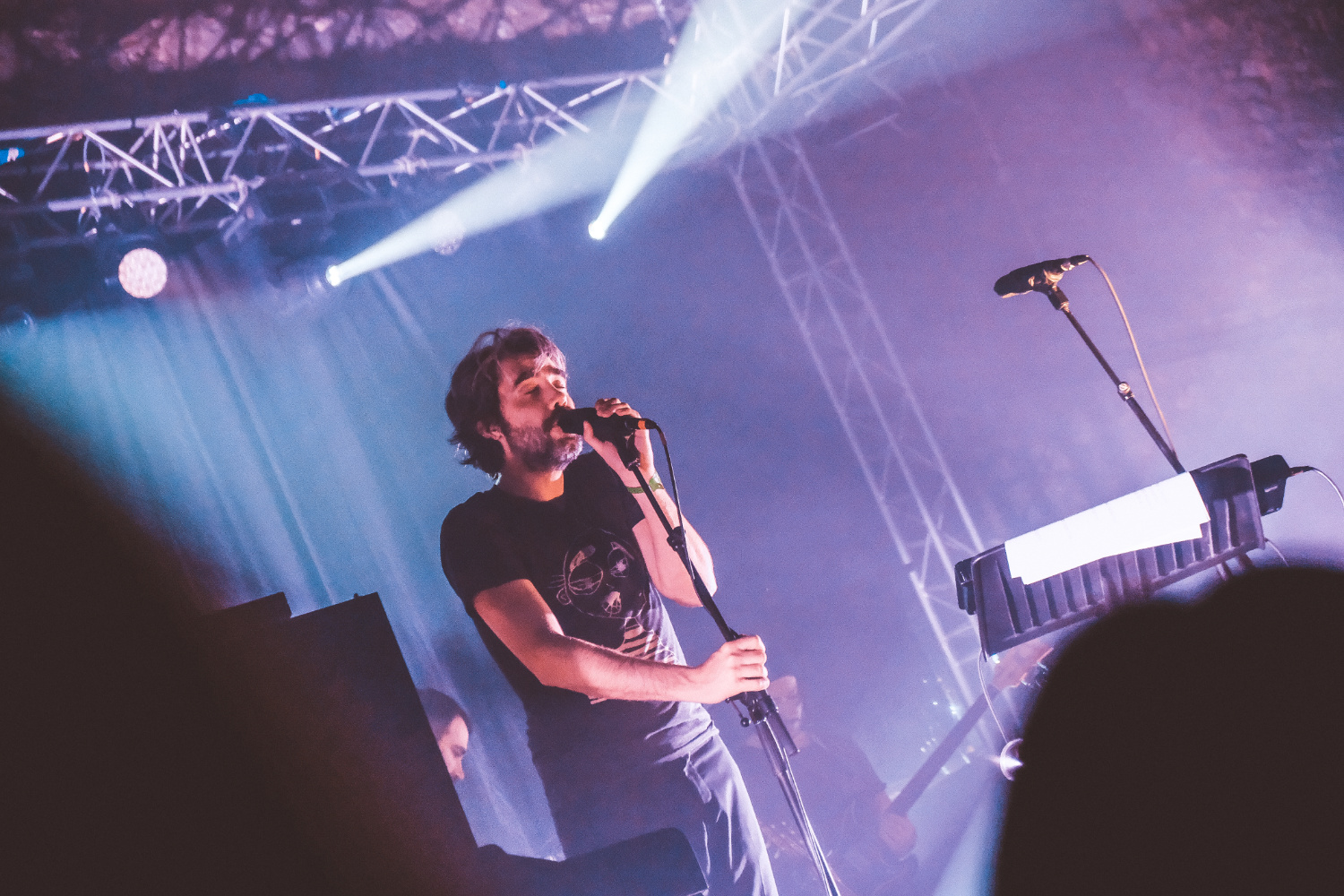 Depois do momento ao centro do palco, volta a tocar músicas como Drifters, Hearts e Grace com ligeiras alterações nos arranjos, como se vem tornado habitual no seu registo. “Adventures On Your Own Backyard” teve direito a uma outra atenção, com justiça a ser feita ao seu título, com uma cacofonia experimental no final. Entre canções vai beberricando do seu rum ao ponto de chamar pelo refill. Ao contrário do que tem sido o resto da noite, as luzes pintam “Turn Into The Noise” de uma forma elegante e eficaz, ponto um ponto final à primeira e maior parte do concerto. Já o espaço permitiu que o som tivesse uma qualidade constante. Fraca. É compreensível que se ache que um armazém com quatro paredes em alvenaria seja esteticamente agradável, e infeliz que se ignore que o mesmo espaço seja inversamente proporcional em termos de apreciação acústica.