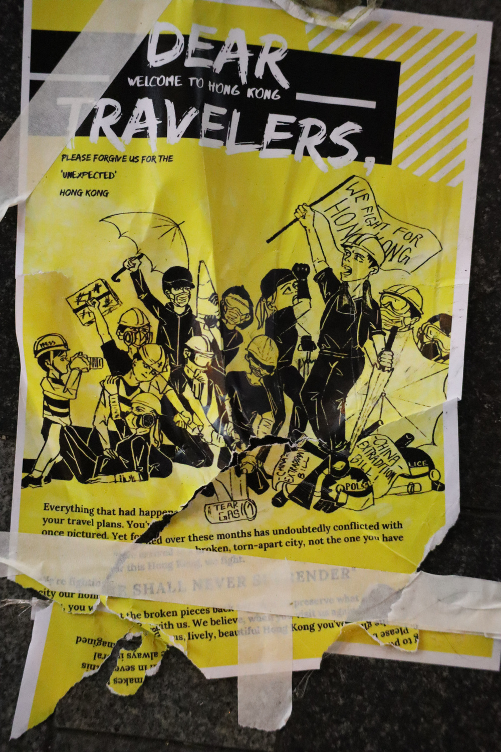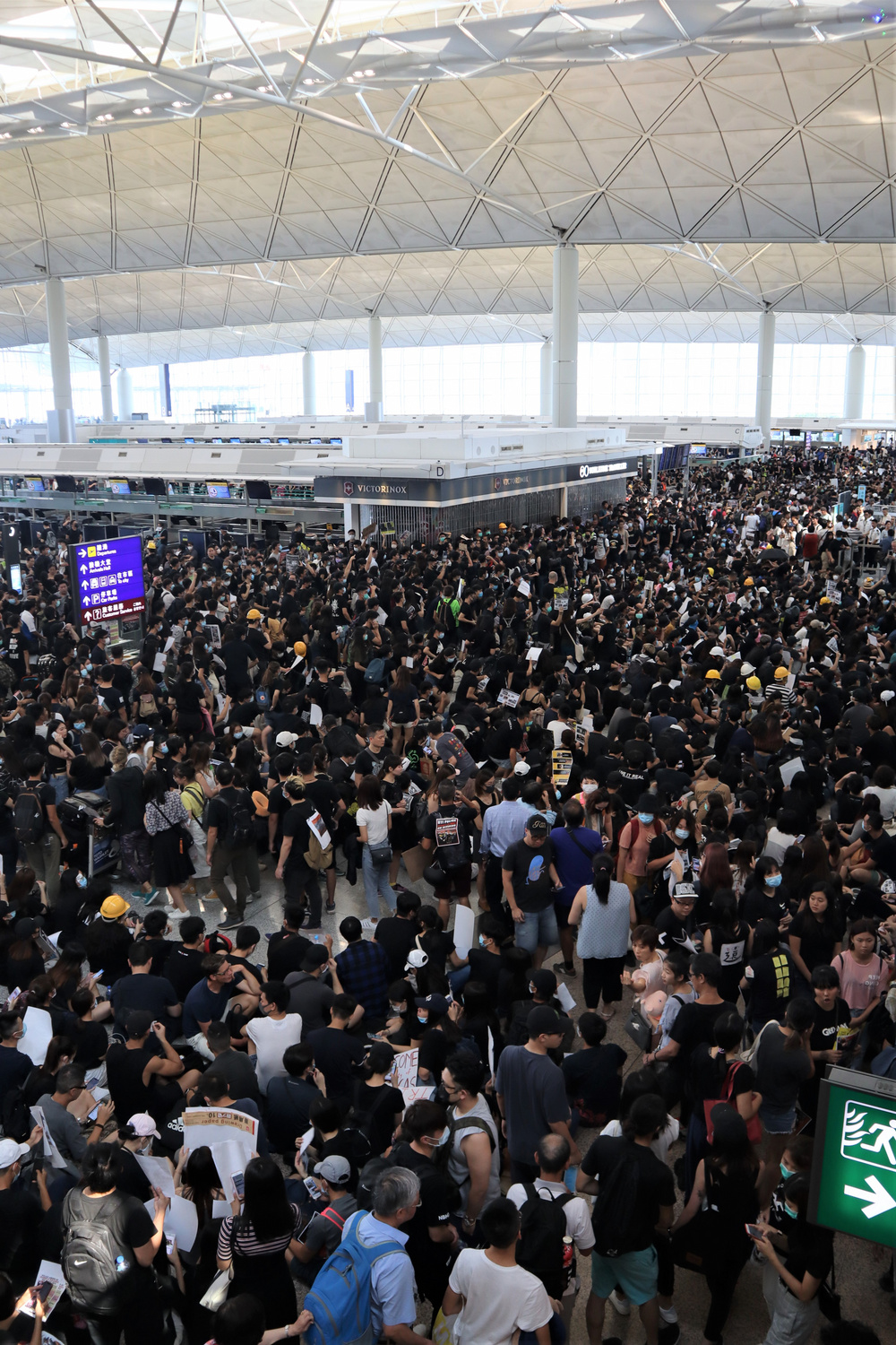 Um dia antes da sua partida, no dia 11, Inês cruzara-se directamente com manifestantes com quem pode trocar as primeiras impressões sobre as motivações do que se ia passando. Já no dia em que tinha prevista a sua viagem de regresso, percebera que o aeroporto de Hong Kong se tornara o principal ponto de encontro dos manifestantes, levando ao cancelamento de todos os voos agendados.