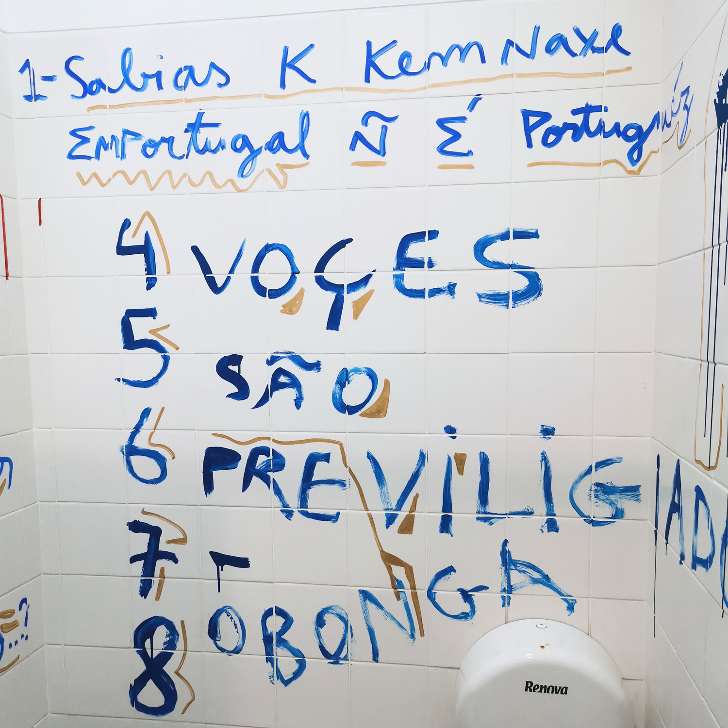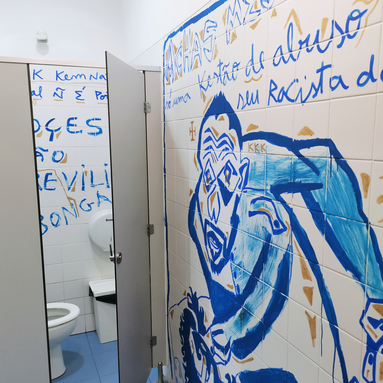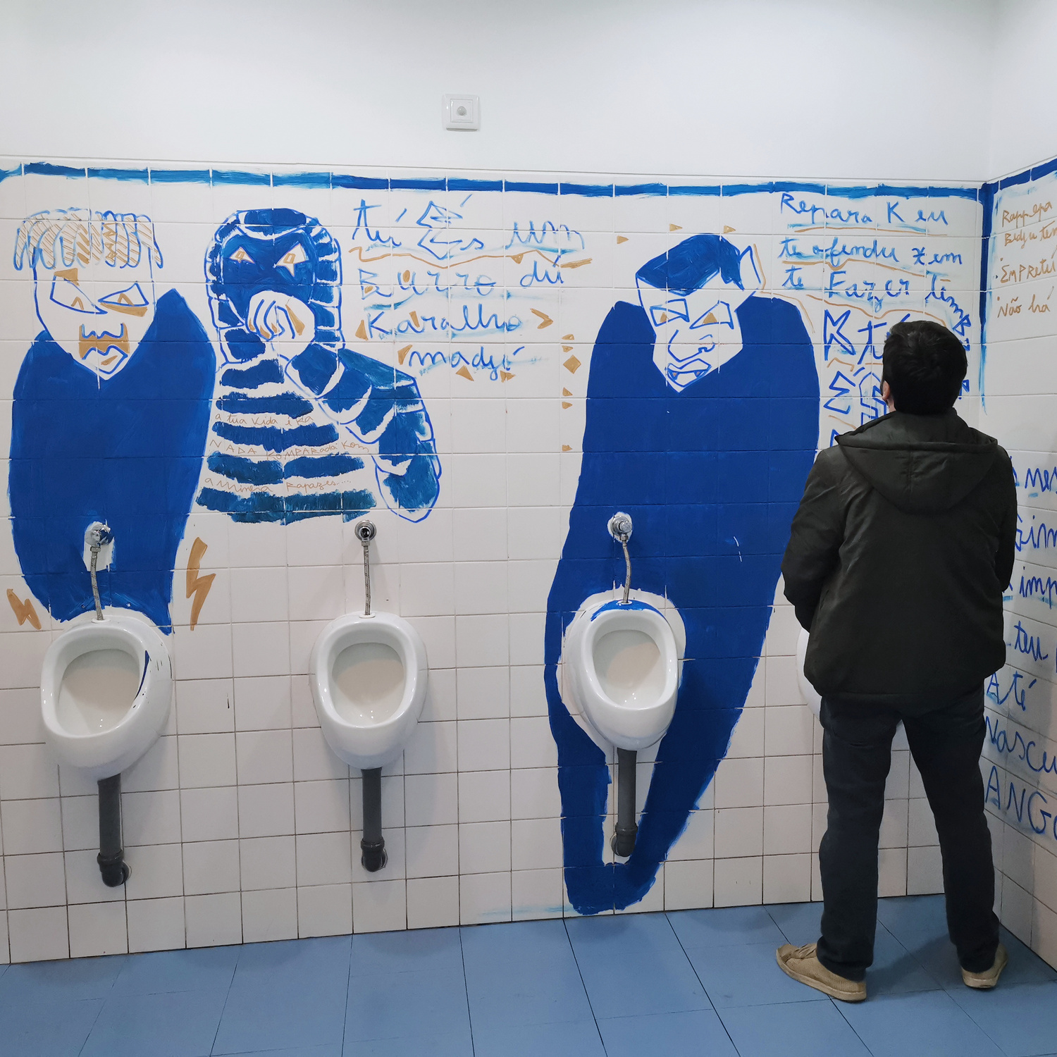 As do Micro Clima não seguem essa “regra” e daí iniciarmos este texto por elas. O artista Rappepa Bedjo Tempo teve carta branca para fazer com os azulejos vazios dos quatro WCs do festival o que quisesse e o resultado não poderia ser melhor, seguindo a onda do que apresenta no seu Instagram. Nas paredes de uma das casas-de-banho, por exemplo, havia dicas sobre a masculinidade tóxica e apontamentos sobre racismo, escritos e desenhados com classe artística mas na linguagem de tags que costumamos ver nesses espaços públicos. Uma surpresa para quem só ia lá porque o corpo obrigava mas sentiu-se na necessidade de sacar do telemóvel e a fazer aquela foto para as Stories.