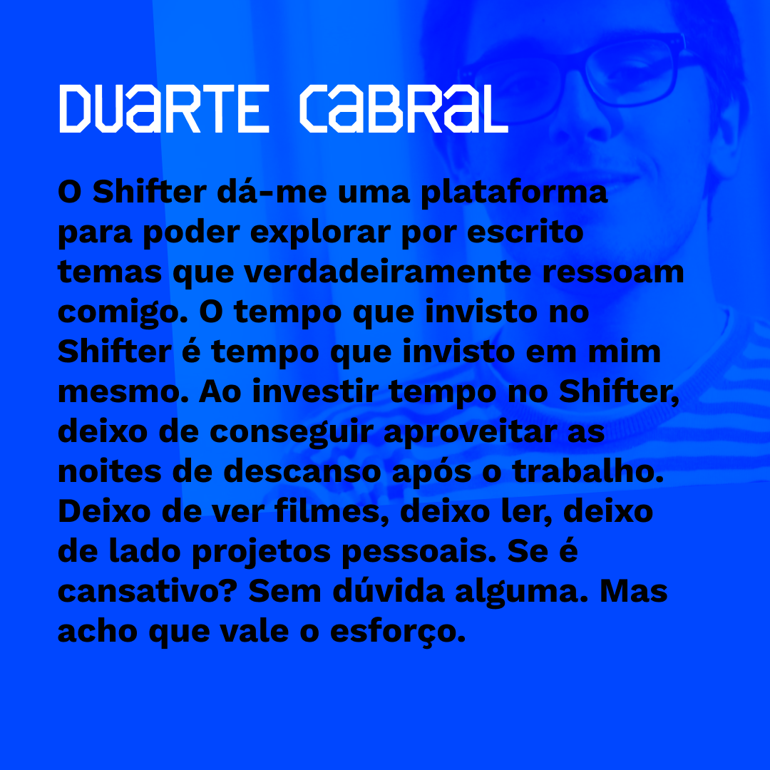 No Shifter já andámos mais atrás do tempo. Cada vez mais preferimos a profundidade da leitura à velocidade da informação, e temos relaxado na produção de conteúdo para que cada peça que entregamos valha o nosso investimento a produzir e o teu investimento a ler!