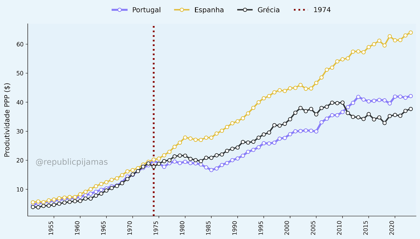 No fundo, novembro deve ser celebrado como uma correção, mesmo que insuficiente, da aproximação de Portugal ao caminho espanhol. A descontinuidade na produtividade a partir da revolução é inegável, mas quando analisada ao detalhe, este indicador está bem longe de significar que Abril condenou Portugal ao atraso face a Espanha.
