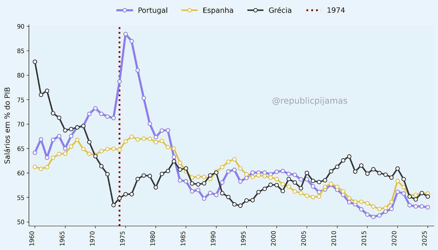Nas suas aparições públicas e no seu livro As Causas do Atraso Português (escrutinado nesta newsletter), Nuno Palma – um novembrista – tem popularizado a tese de que o período revolucionário causou danos estruturais na economia portuguesa, que por sua vez pautam o fraco desempenho dos 50 anos posteriores. Apesar do seu estilo e personalidade bastante peculiar, Palma e as suas teses não devem ser ignoradas. O seu pensamento vai fazendo o seu caminho tanto nos meios de comunicação alternativos da extrema-direita como na institucionalidade através do seu livro.