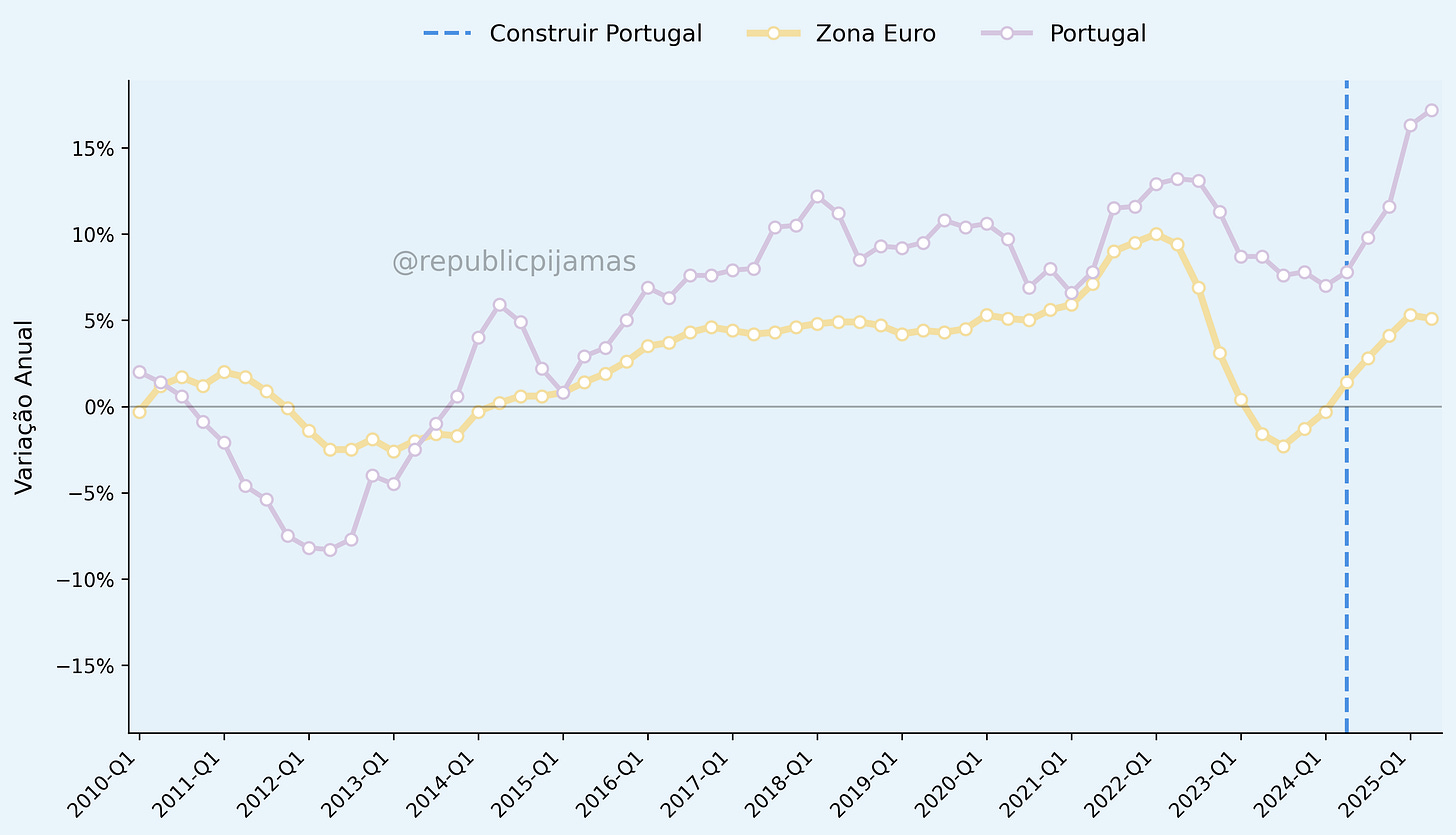 Desde o início de 2024, que coincide com o governo de Montenegro, os preços da habitação tiveram um aumento extraordinário de 27%. Subida essa que acelerou a partir da implementação do Construir Portugal. No último ano, com as medidas do governo a todo o vapor, a habitação encareceu 17,7%, o maior aumento desde que há estatísticas em Portugal. Focando nos jovens que beneficiaram da isenção de IMT, os aumentos de preços anularam por completo a redução de custo que a medida traria.