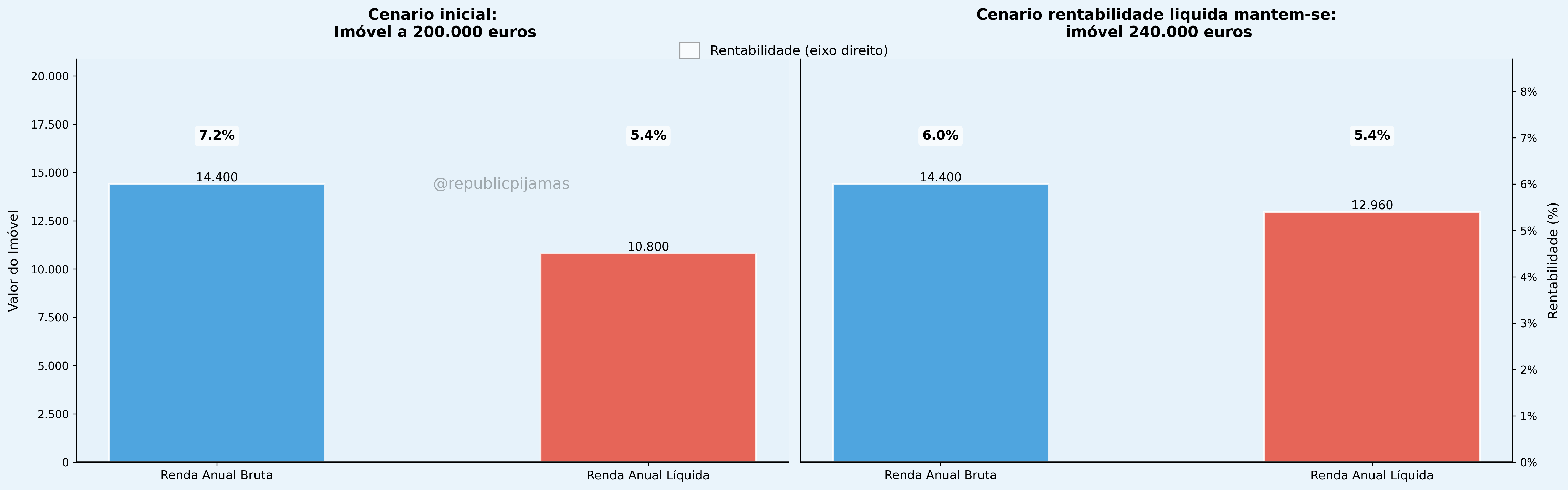 Em suma, deve-se esperar que os investidores fiquem mais interessados em adquirir imóveis, aproveitando as novas taxas de rentabilidade. Este interesse, antes de causar qualquer aumento da oferta de imóveis, irá pressionar o preço de imóveis já existentes. Regressando ao exemplo anterior, os investidores imobiliários hoje satisfeitos com as rentabilidades líquidas existentes (4,1% antes do corte de impostos) estarão dispostos a pagar, no limite, mais 40.000 euros pelo mesmo imóvel (mais 20% do valor inicial), mesmo cobrando a mesma renda bruta. Mesmo sem um aumento abrupto e imediato nessa magnitude, este exercício mostra os efeitos contraproducentes desta redução de impostos.